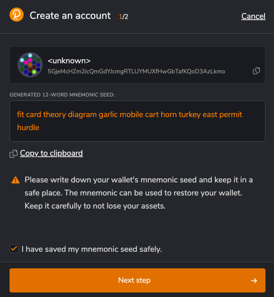- Make sure you save your mnemonic seed phrase in a separate file.