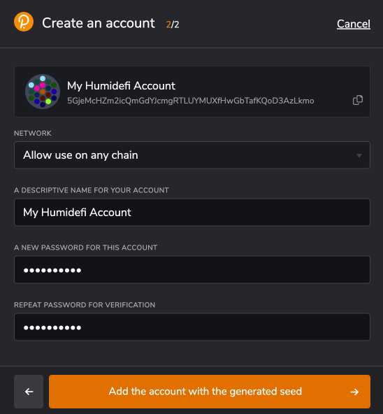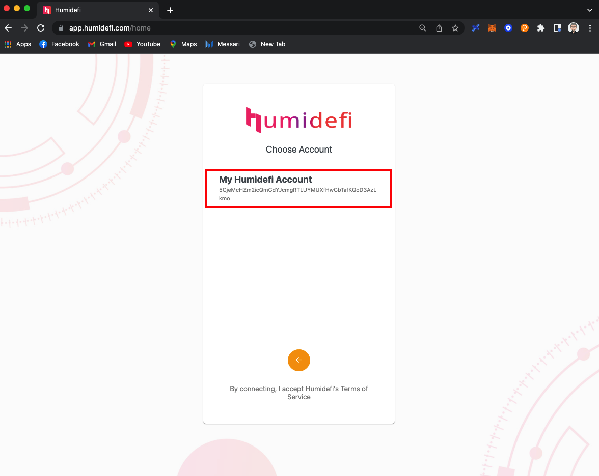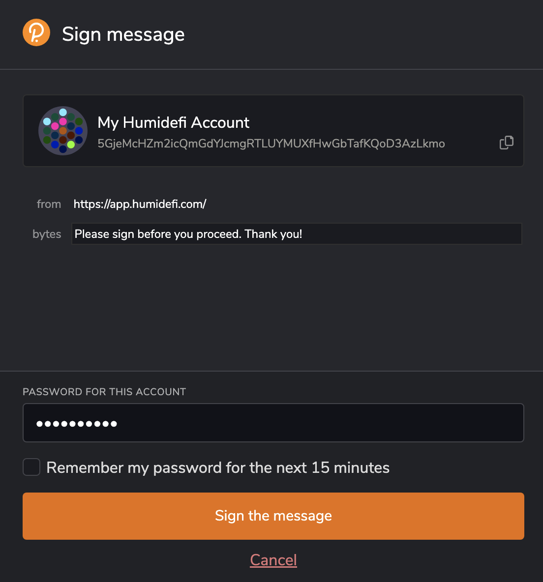 Login using your Polkadot wallet account. Don’t forget to allow the site to be trusted by the wallet.